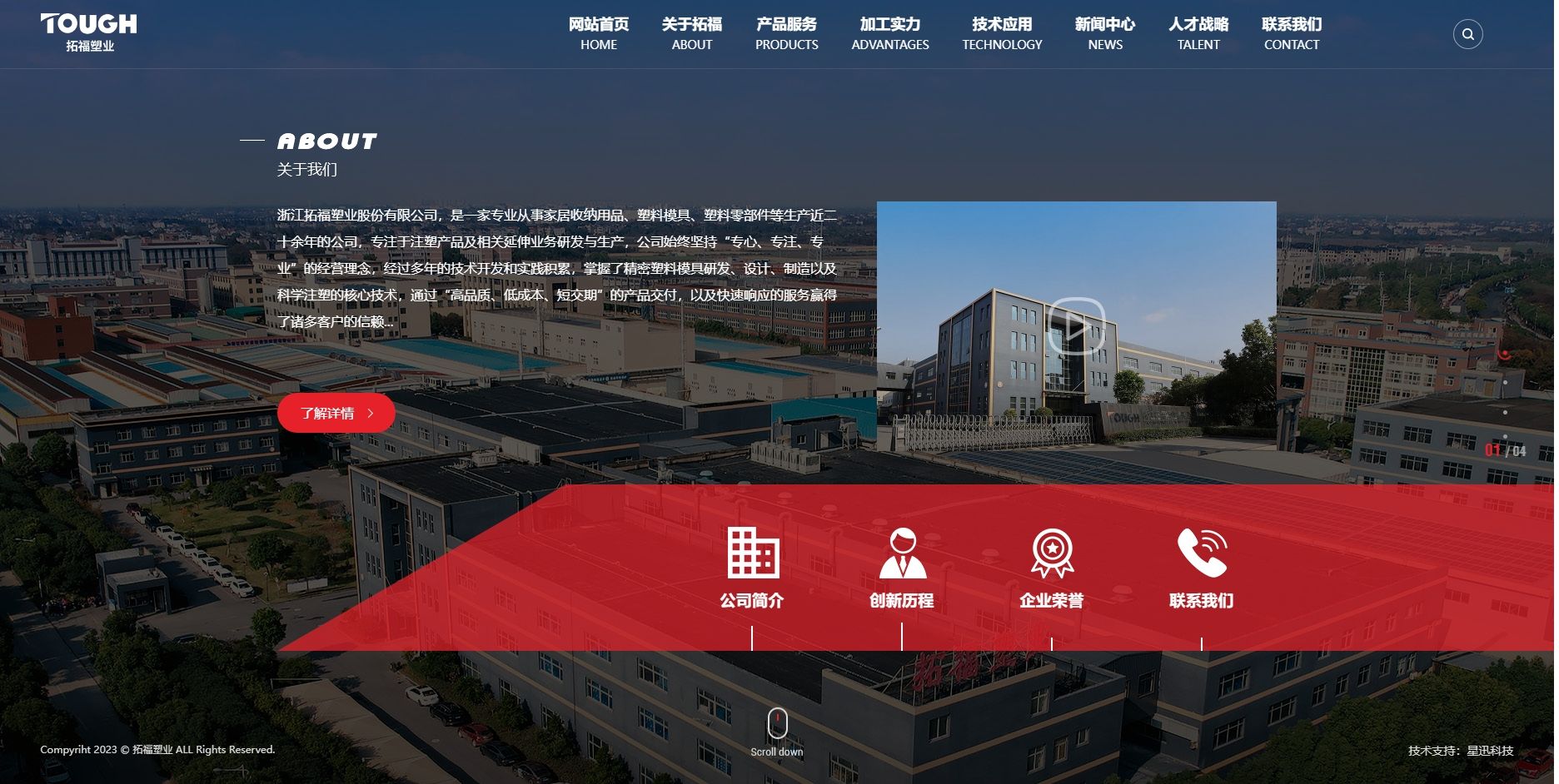 浙江拓福塑業股份有限公司,是一家專業從事家居收納用品、塑料模具、塑料零部件等生產近二十余年的公司,專注于注塑產品及相關延伸業務研發與生產,公司始終堅持“專心、專注、專業”的經營理念,經過多年的技術開發和實踐積累,掌握了精密塑料模具研發、設計、制造以及科學注塑的核心技術,通過“高品質、低成本、短交期”的產品交付,以及快速響應的服務贏得了諸多客戶的信賴。